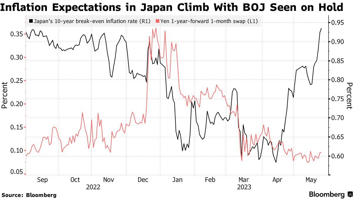 与此同时,日本的通胀形势可能愈发严峻,该国投资者对通胀保护的需求已经创下今年的新高。