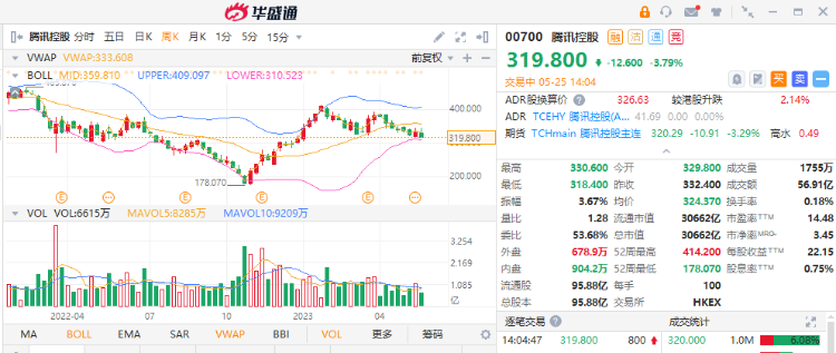 腾讯 $00700.HK 今早低开下试低位,最低见318.4港元,迫近1月初的低位。有券商指腾讯首季经营溢利超出预期,并料今年纯利增长将超越收入增长,维持对其「买入」评级。