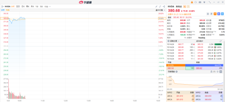 英伟达绩后股价狂涨超24%,市值逼近万亿。在英伟达带动下,半导体股纷纷走高,AMD涨超9%,迈威尔科技、博通、美光科技涨超2%。
