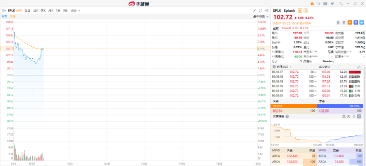 Splunk涨超6%,报102.72美元。