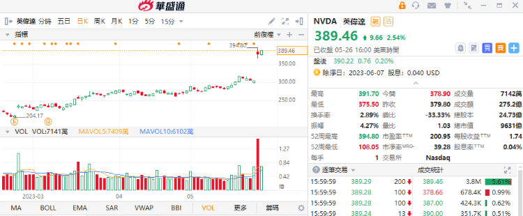 第2名英伟达收高2.54%,股价再创历史新高,成交274.1亿美元,市值超过9600亿美元。该公司公布了强劲的财报与业绩指引后,其股价在周四大涨逾24%。