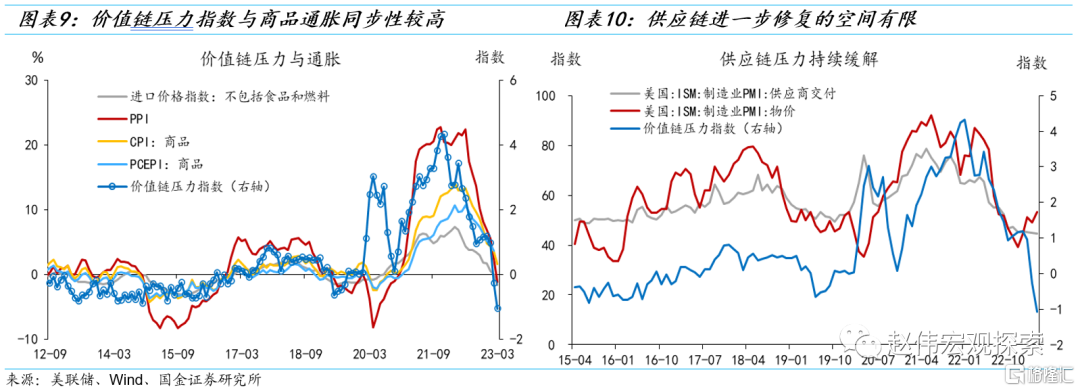去通胀“上半场”的3个特征事实,在一定程度上解释了为什么通胀率的下行和失业率维持低位可以并存——供给侧修复为主,需求侧收缩的贡献非常有限。关键问题是,该阶段还会持续多久?