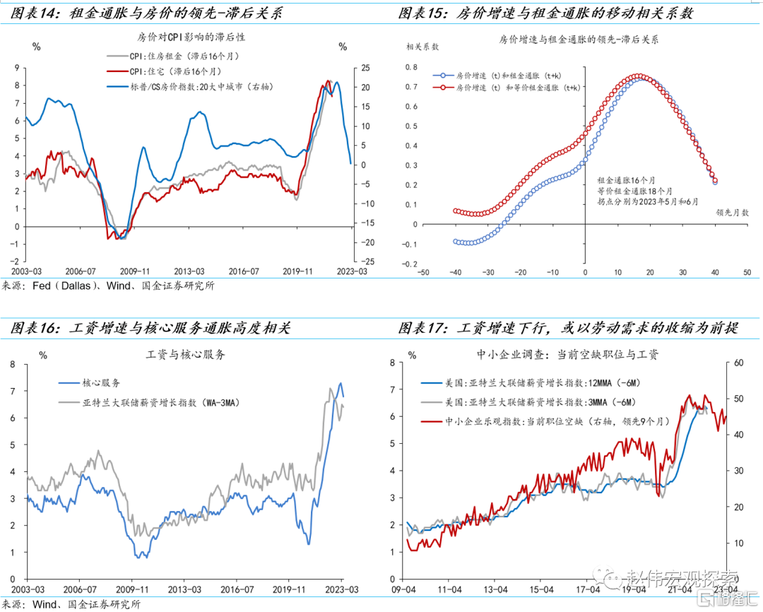 [2] 从相关系数上来说,核心服务(不扣除租金)通胀与工资的相关系数更高(0.83,扣除租金的服务通胀与工资的相关系数为0.66)。