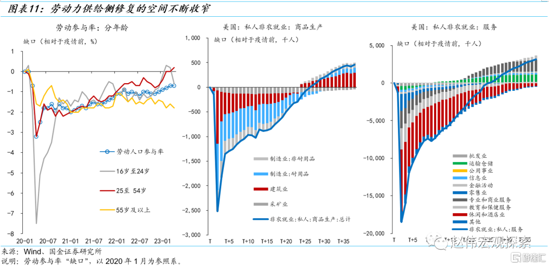 总结而言,“去通胀”和“软着陆”可以并存的假设,是建立在供给侧持续修复的乐观的假设之上的。随着去通胀进入“下半场”,失业率和“牺牲率”的上行是通胀进一步下降的前提。