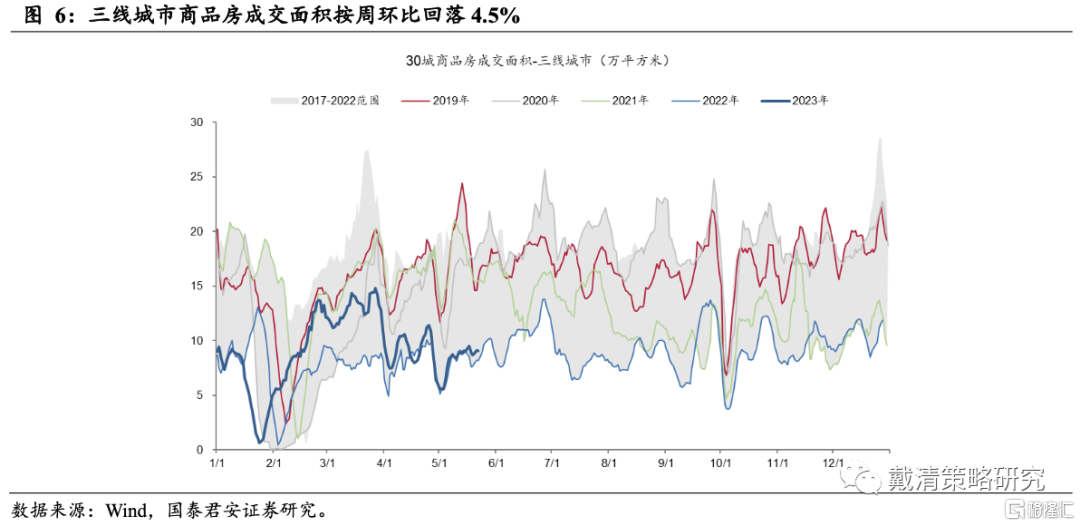 由于加息预期升温和债务上限协议未取得实质性进展,恒生指数上周累计大幅下跌3.6%,恒生国企指数同期下跌3.9%,恒生科技指数跌3.4%。有色金属需求疲软,原材料板块跌幅最大。5月24日,LME铜也创下近六个月以来的新低。地产持续下行,商品房成交面积一二三线城市均环比回落。医药股跌幅有所收窄,因前期持续回调,板块进入估值底部区域,下行空间较小。