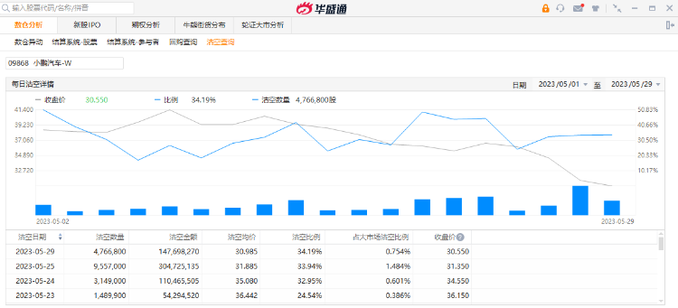根据相关数据统计,小鹏汽车的卖空股份和金额从5月12日的495.69万股和1.95亿港元升至5月25日的955万股和3.04亿港元。这些数据在十个交易日中分别增加92%和55%。