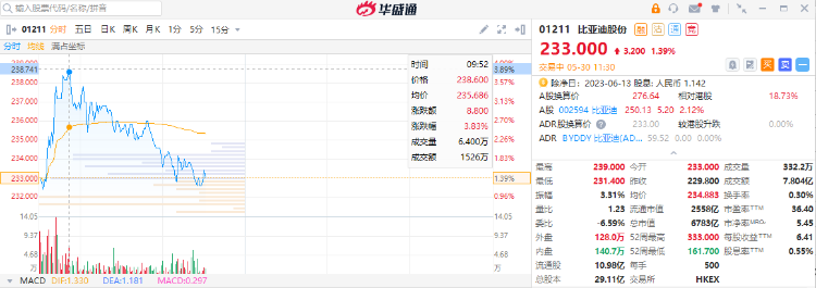 华盛资讯5月30日消息,港股汽车股早盘回暖,截至发稿,比亚迪股份盘中涨近4%,现报233港元每股,成交额7.8亿港元,理想汽车-W涨近3%,零跑汽车、长城汽车涨超2.6%,小鹏汽车-W涨1.96%,吉利汽车、北京汽车、蔚来-SW跟涨。现时涨幅缩小。