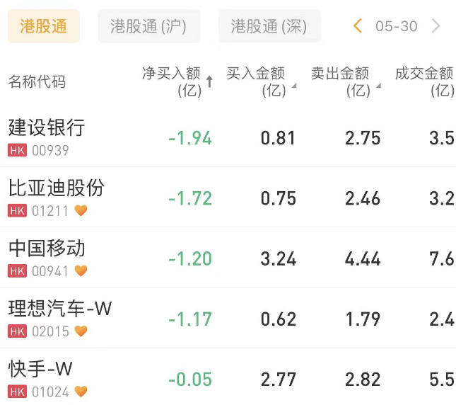 建设银行净卖出额居首,金额为1.94亿港元。注:南下资金自5月5日至今已连续17日净卖出建设银行,累计约70.3084亿港元。
