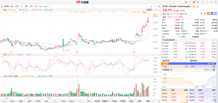 仅等到Palantir本月早些时候公布了第一季度财报,获得了投资者的欢迎,自报告发布以来,该公司股价才飙升了75%以上。