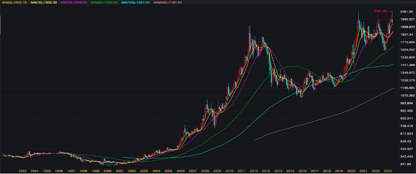 无论是银行业危机,还是美债债务上限问题,都进一步激发了市场的避险情绪,再叠加海外经济衰退的预期,由此导致黄金价格在今年节节攀升,金价来到了93年以来的高位。然而,根据桥水披露的一季度持仓中,却是卖出了黄金ETF共计34.02万股,将期末持仓降至88.68万股。