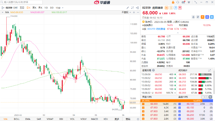 集团年内收购多家优质企业,并将之业务跟现公司进行整合,以实现完善的产业链,以增强协同效应。在全球30多个国家或地区,拥有超过5,950家客户,包括全球首20的大制药企业。占整体营业额约46.8%。未来会继续加强创新药物发现及研发,以加强满足客户需求。可于现价68港元附近吸纳,中长线可见97港元,跌穿59港元止蚀。