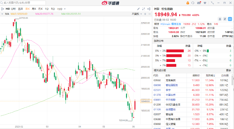 由于早前港股因为外围的债务危机持续,拖累恒指跌穿20000关口后再失守19000关口,更曾迫近18000至低见18044。已感觉出现严重的超卖。而美国最大忧虑的问题也暂见解决,再加上劳工数据反映通胀似见降温,令到加息的步伐可以停止。也造就周五(2日)港股的报复式急升。接近高位,可以借机会减持,待回落后再作部署。