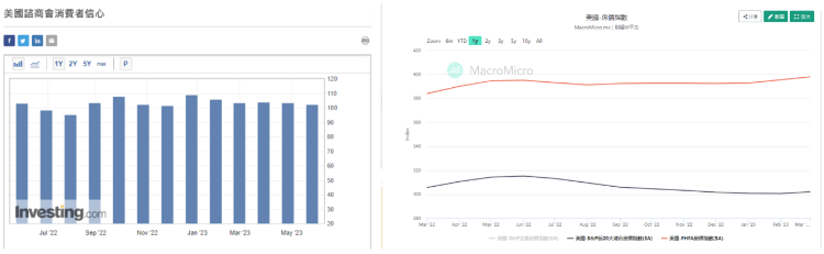美国公布5月份咨询商会消费者信心指数报102.3,略好过预期99,及上月101.3。3月份标普/Case-Schiller 20 大城市楼价指数按月升0.45%,胜预期持平及上月的微升0.06%。同月份的FHFA全国楼价指数按月升0.6%,亦高过预期0.2%及上月0.5%。数据反映当地楼价似见反弹,也印证经济增长仍见靠稳。
