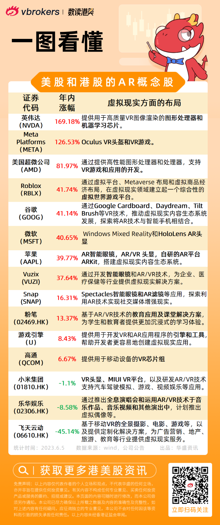 如果本次大会MR产品超过市场预期,那么6月初的全球市场有望掀起一波VR概念的炒作风暴。發仔梳理了美股和港股市场中的VR概念股,供投资者参考。