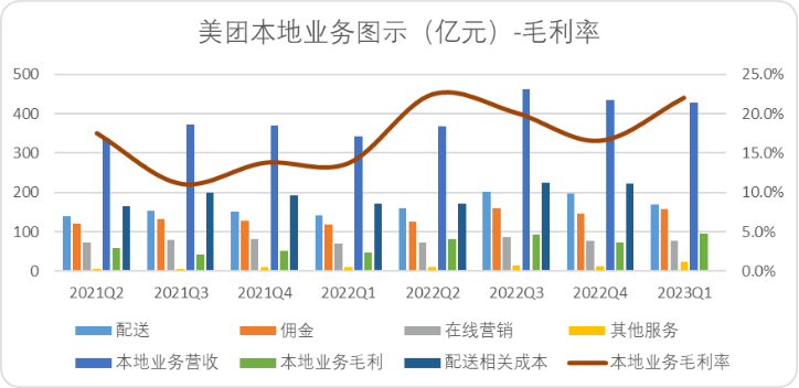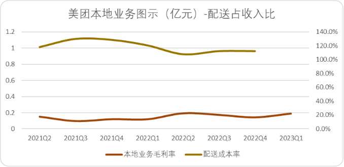 这样的现象,我们通常会用一般视角去解释:即,收入增长摊薄成本。但之于美团而言,这一逻辑并不严谨,比如2022Q4美团的收入远高于2022Q2的收入,但是毛利率却出现了明显的下滑。