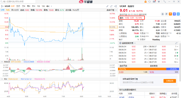 优品车股价今日盘前再涨10.10%报9.92美元每股,该股上周股价累升超161%。此前公司表示,计划与Quantum合作,在日本制定与新能源汽车的营销、研究和开发、金融技术、电池银行、电动汽车充电以及电池交换业务和服务有关的业务举措。