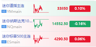 在周一盘前,三大股指期货涨跌不一,道指期货涨0.10%,纳指期货跌0.16%,标普500期货涨0.06%。