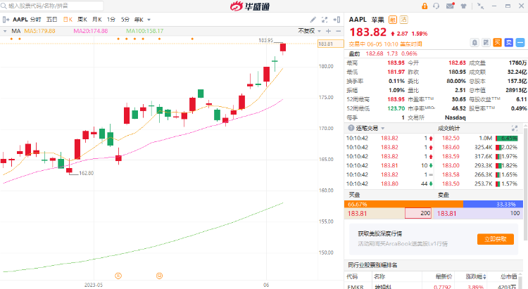 周一(6月5日)美股开盘后不久,苹果股价涨超1.4%,现报每股183.47美元,刷新其历史前高182.88美元。