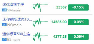 在周二盘前,三大股指期货集体走弱,道指期货跌0.15%,纳指期货跌0.03%,标普500期货跌0.09%。