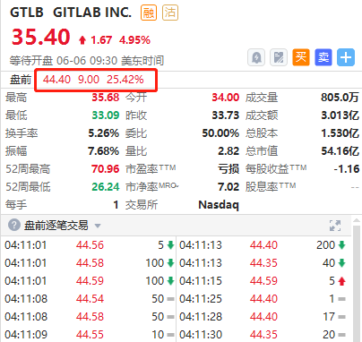 截至发稿,GitLab $GTLB 盘前涨25%!Q1营收同比增长45%,公司预计第二财季营收1.29-1.3亿美元,超预期的1.27亿美元。