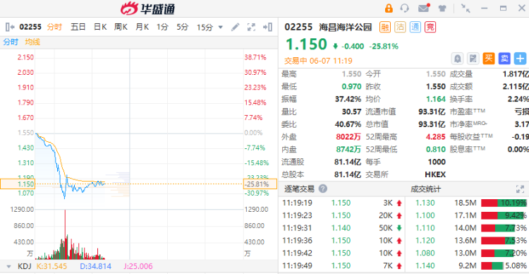 6月7日上午,截至发稿,海昌海洋公园跌25.81%。对于股价大幅下行,原因仍属未知。不过根据最新公告,该公司在成都欢乐谷奥特曼主题馆已于近日正式开业,场馆总面积超过2500平方米,为西部首家奥特曼主题馆,以及全国第三家奥特曼主题馆。
