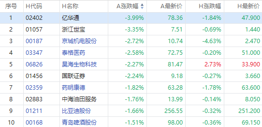 亿华通A股跌超3%,H股现跌超1%;浙江世宝A股跌超3%,H股现跌0.69%;京城机电股份A股跌超2%,H股现跌超4%。