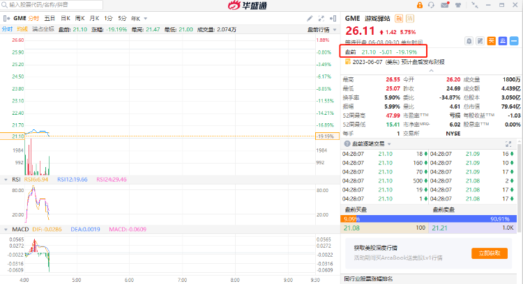 截至发稿,游戏驿站盘前大跌19.19%报21.19美元每股,上季收入同比跌10.14%至12.4亿美元,低于市场预期,CEO被解雇。
