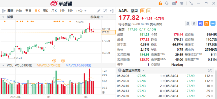 尽管苹果发布了这个亮眼的新产品,但股价实际上在发布当天下跌了0.76%,从184.95美元下跌至179.58美元。华盛分析师Loui认为股价下跌的原因可能是3499美元的价格超出市场的预期,因此消费者可能不会像iPhone发布时那样涌入购买。