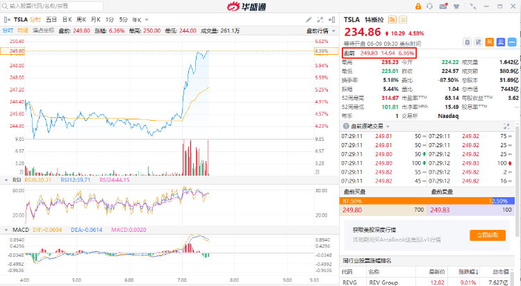 特斯拉隔夜实现十连涨,股价创去年11月新高。截至发稿,特斯拉盘前再涨6.36%报249.8美元每股;消息面上,特斯拉正在与Generalitat Valenciana就在西班牙瓦伦西亚地区建设汽车装配厂进行谈判。据西班牙媒体,特斯拉将投资超过45亿欧元。