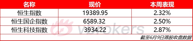 恒生指数本周涨2.32%,报19389.95点;国企指数本周涨2.50%,报6589.32点;恒生科技指数本周涨2.87%,报3934.22点;