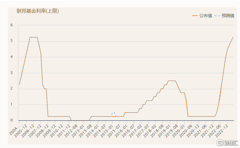 自去年3月开启本轮货币紧缩周期以来,美联储已经加息500基点,联邦基准利率也从0%-0.25%上升至5%-5.25%。