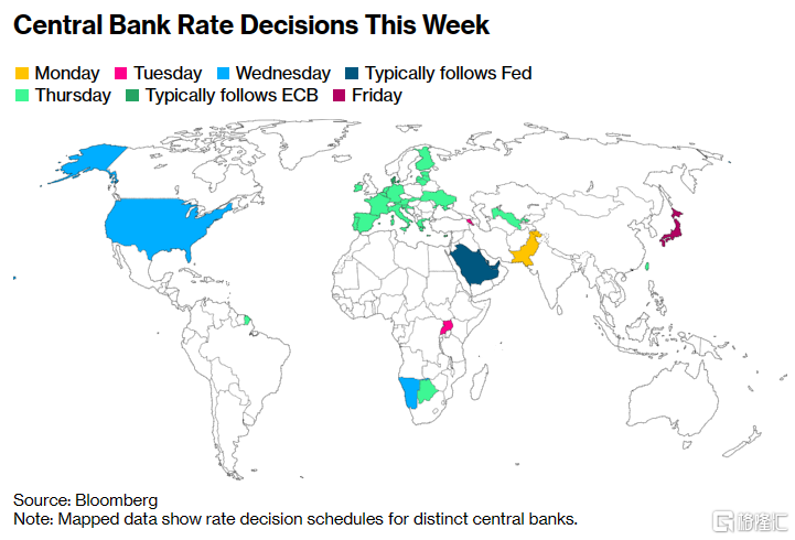 本周,重磅事件很多,主要是全球几大央行将公布最新的货币政策。
