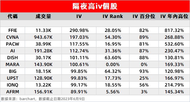 2、西太平洋银行、C3.ai、Upstart隐含波动率较上一交易日有所下降。