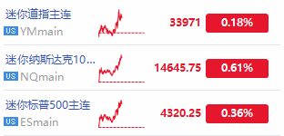在周一盘前,三大股指期货集体走强,道指期货涨0.18%,纳指期货涨0.61%,标普500期货涨0.36%。