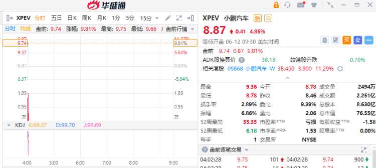 截至发稿,小鹏汽车美股盘前涨超9%,消息面上,小鹏G6 72小时预订用户超2.5万人。