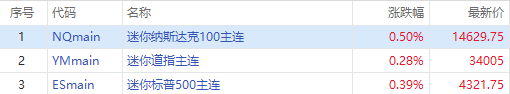 华盛资讯6月12日消息, 美股三大股指期货盘前普涨,纳指期货$NQmain 现涨0.5%,标普500指数期货 $ESmain 涨0.39%,道指期货 $YMmain 涨0.28%。