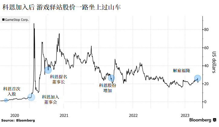 2021年科恩加盟之初,正逢华尔街准备做空游戏驿站之际。彼时,科恩即将加入的消息一经传出引发了散户大举涌入游戏驿站股票,一场史诗级的“散户大战华尔街”神话就此创下,带动游戏驿站股价激增了2,000%以上。