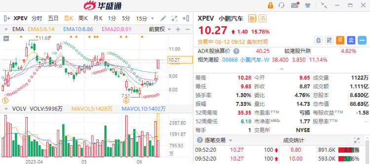 华盛资讯6月12日消息,热门中概股多数上涨,小鹏汽车盘初涨幅扩大逾15%,小鹏G6在开启预售后72小时预订用户超2.5万人。