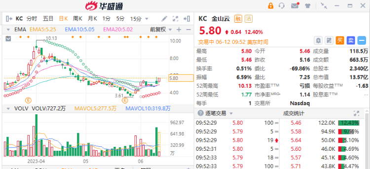 金山云涨超12%,公司上周五公告,副董事长兼CEO邹涛截至该公告日期已于公开市场购买金山云200万股股票。