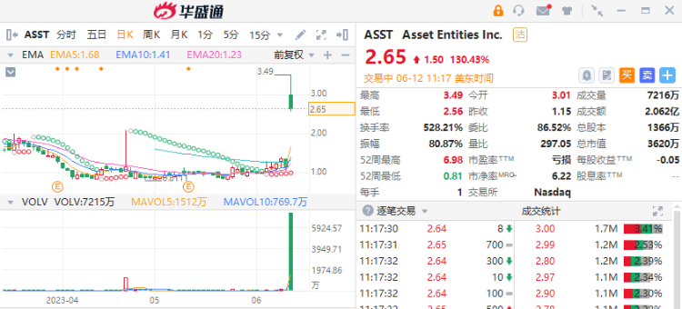 Asset Entities $ASST 正在推出其名为 “Eddie” 的新Avatar,这是一款以娱乐为主题的AI Bot,将作为其AE.360.DDM服务套件的一部分提供。截至发稿,该股涨超130%,报2.65美元,暂成交2.062亿美元。