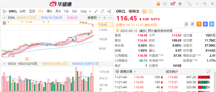 甲骨文 $ORCL 涨超6%,报116.45美元,总市值3144亿美元,股价续创历史新高,公司将于今日美股盘后发布业绩。瑞穗分析师Siti Panigrahi预计,由于强劲的云计算业务,甲骨文第四财季业绩将超过市场预期。