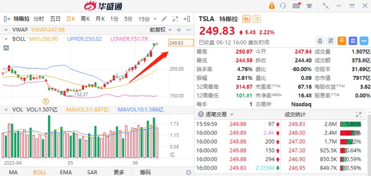 消息刺激下,当地时间周一,特斯拉收涨2.22%,连涨12个交易日至八个月最高,并创其2010年6月上市以来最长连涨纪录。