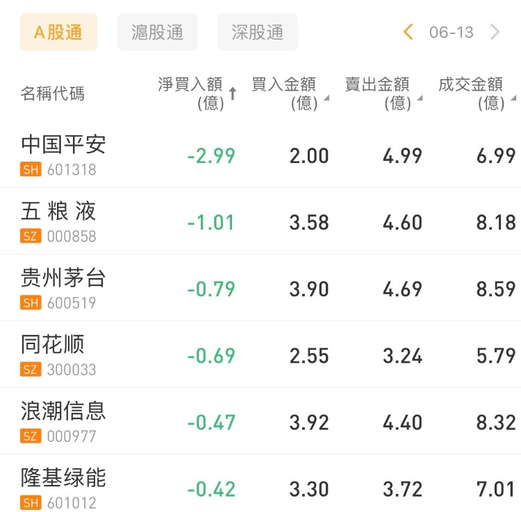 北向资金抛售中国平安