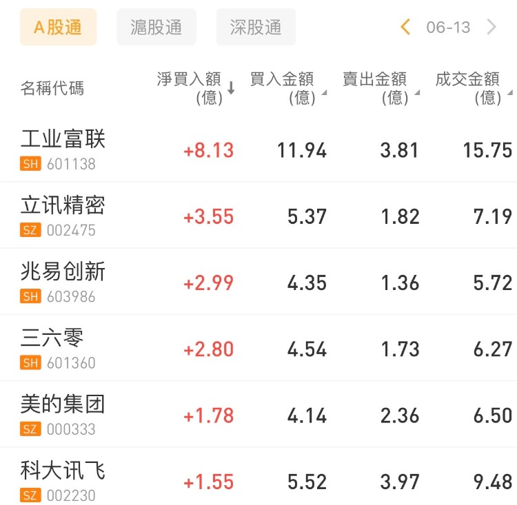 华盛资讯6月13日讯,南向资金今日净买入31.2亿港元,其中港股通(沪)净买入14.9亿港元,港股通(深)净买入16.31亿港元。 北向资金今日净卖出2.31亿元。