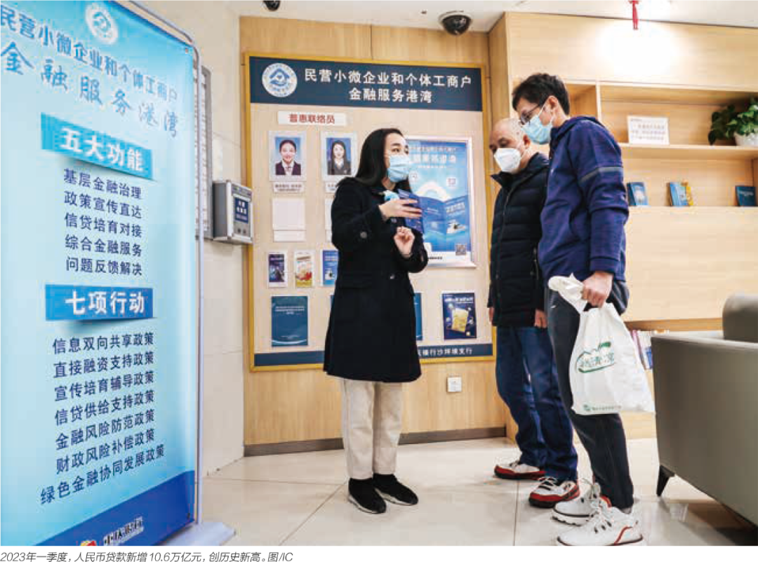 2023年一季度,人民币贷款新增10.6万亿元,创历史新高。4月,人民币贷款增加7188亿元,同比多增649亿元。截至4月末,人民币贷款余额为226.16万亿元,同比增长11.8%,信贷总量保持稳定增长。