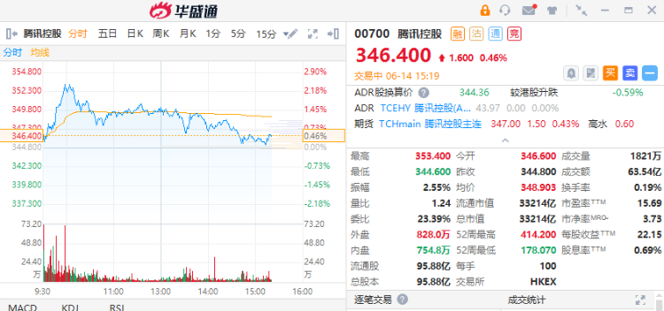 美国5月消费者物价指数(CPI)按年升4%,低过预期的4.1%。通胀放缓,市场憧憬美联储6月暂停加息。今早科技股有资金追棒,开市初段腾讯控股曾触353.4港元,升越五十天平均线,技术层面有待突破,如看好可留意认购证16850 $16850.HK ,行使价410.18港元,2023年10月到期,实际杠杆8.5倍。