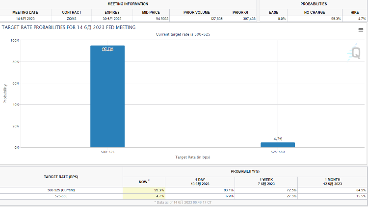 华尔街将关注经济预测摘要中的“点阵图”是否显示委员会似乎决心再次加息。美联储内部对于峰值利率的水平有两派看法,鸽派打算坚守3月份预测的5.1%峰值利率预测,鹰派则希望预测峰值利率在5.4%或更高。