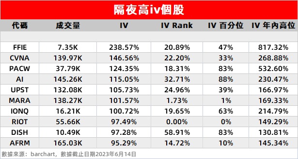 1、Carvana、西太平洋银行、C3.ai其期权隐含波动率连续多日处在高位。