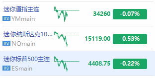 在周四盘前,三大股指期货集体走弱,道指期货跌0.07%,纳指期货跌0.53%,标普500期货跌0.22%。