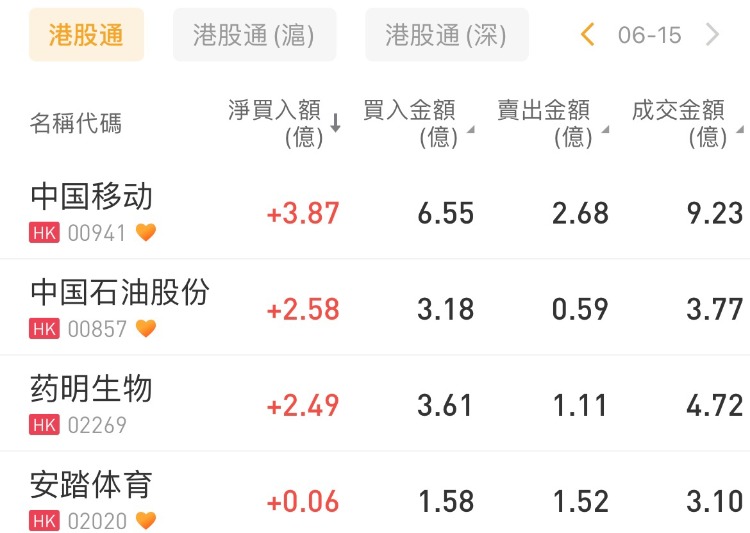 中国移动、中国石油股份、药明生物今日分别获南向资金净买入3.87亿港元、2.58亿港元、2.49亿港元。